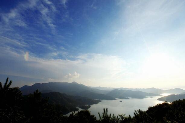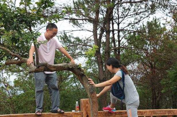我們?nèi)珕T登上筆架山頂,一齊欣賞萬綠湖的美麗秀色,